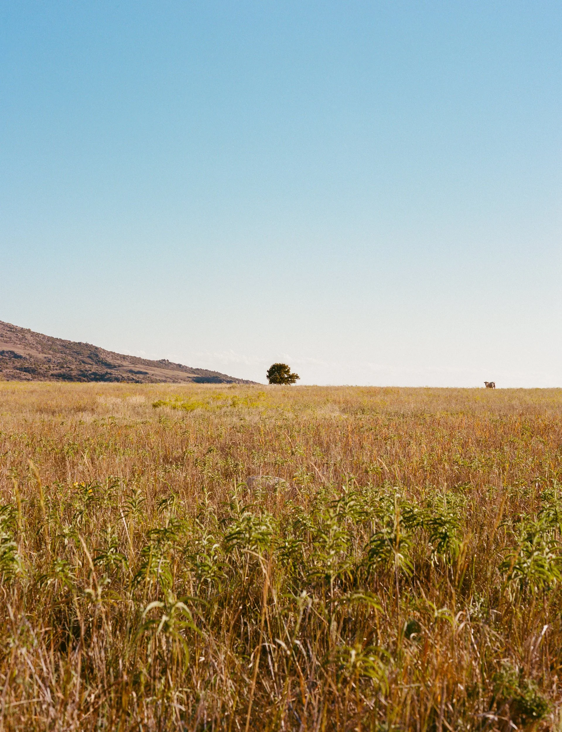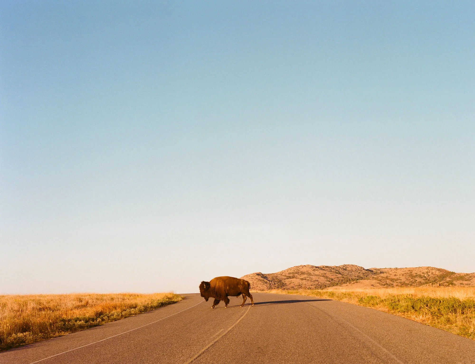 A buffalo at sunset in the Wichita Mountains Wildlife Refuge of Oklahoma, photographed on medium format film.