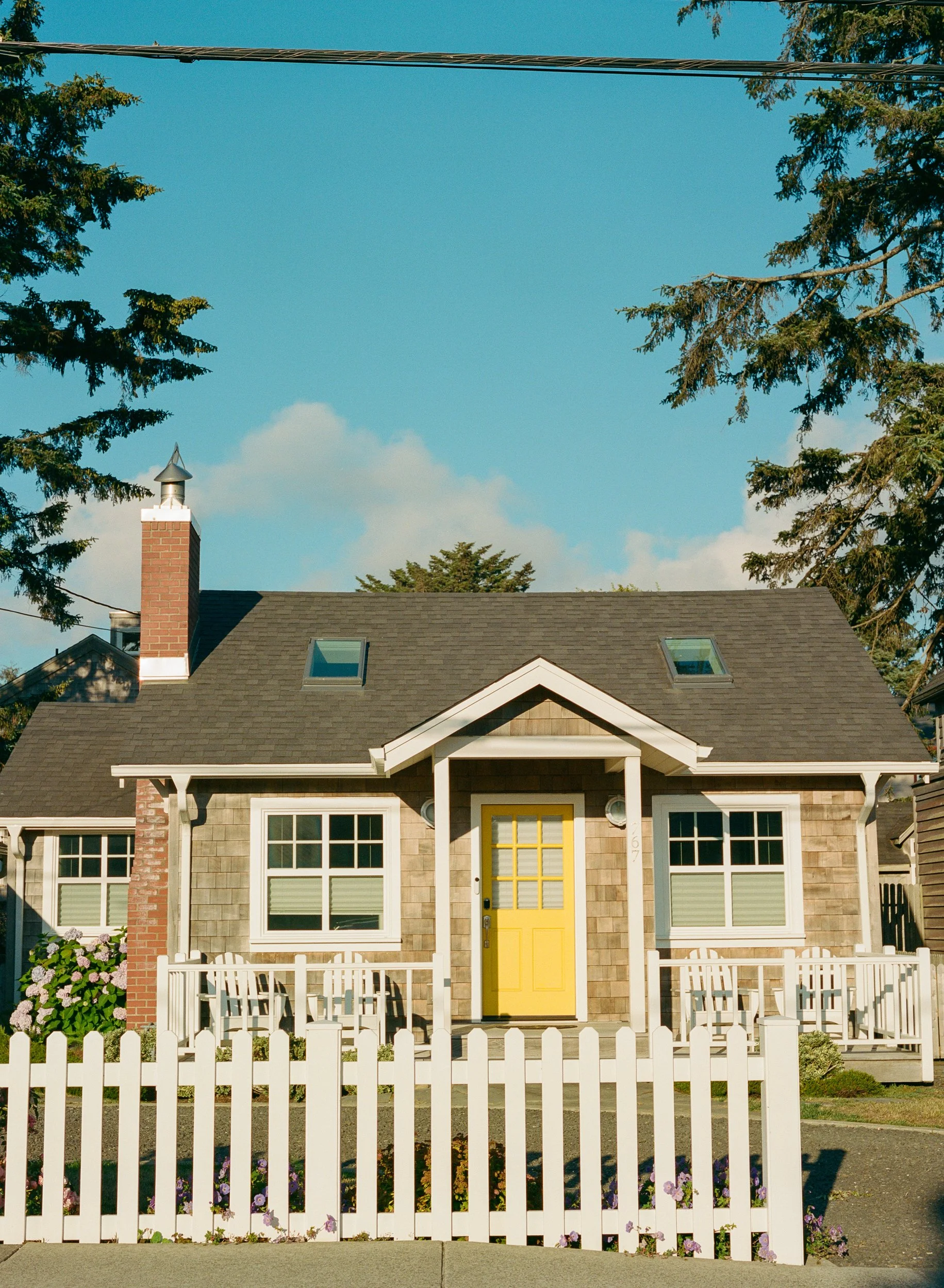 Beautiful flowers blooming in Cannon Beach, Oregon on a summer evening, photographed on medium format film.